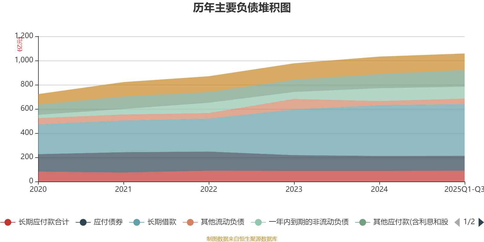 负债重大变化方面,截至2025年三季度末,公司长期借款较上年末增加1.93%,占公司总资产比重下降0.99个百分点;一年内到期的非流动负债较上年末减少8.71%,占公司总资产比重下降0.91个百分点;其他应付款(含利息和股利)较上年末增加17.94%,占公司总资产比重上升0.82个百分点;短期借款较上年末减少30.19%,占公司总资产比重下降0.65个百分点。