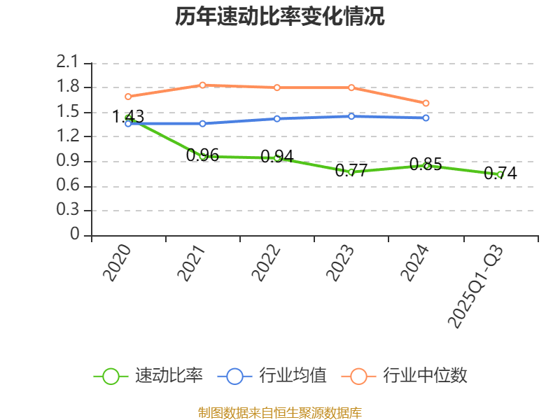 2025年前三季度,公司流动比率为1.32,速动比率为0.74。
