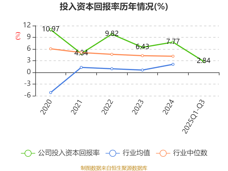 盈利能力方面, 2025年前三季度公司加权平均净资产收益率为4.01%,同比下降8.12个百分点。公司2025年前三季度投入资本回报率为2.84%,较上年同期下降4.44个百分点。