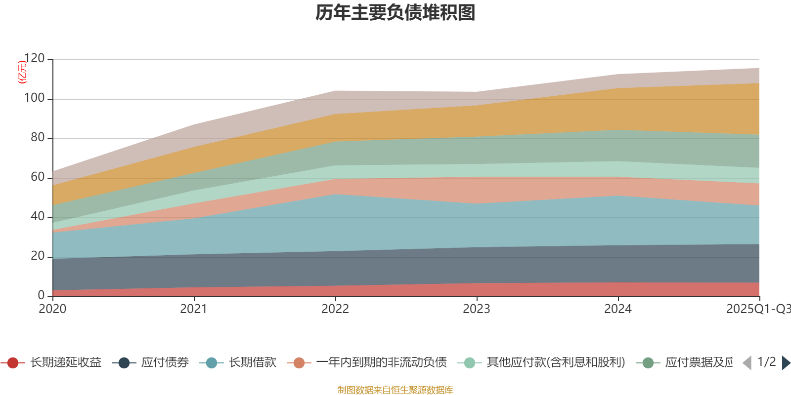 负债重大变化方面,截至2025年三季度末,公司长期借款较上年末减少22.19%,占公司总资产比重下降3.16个百分点;短期借款较上年末增加23.37%,占公司总资产比重上升1.89个百分点;长期应付款合计占公司总资产的0.98%,上年末为0;一年内到期的非流动负债较上年末增加17.13%,占公司总资产比重上升0.58个百分点。