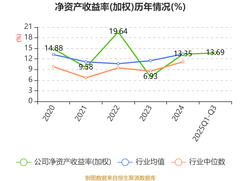 盈利能力方面, 2025年前三季度公司加权平均净资产收益率为13.69%,同比上升1.09个百分点。公司2025年前三季度投入资本回报率为6.62%,较上年同期上升0.28个百分点。