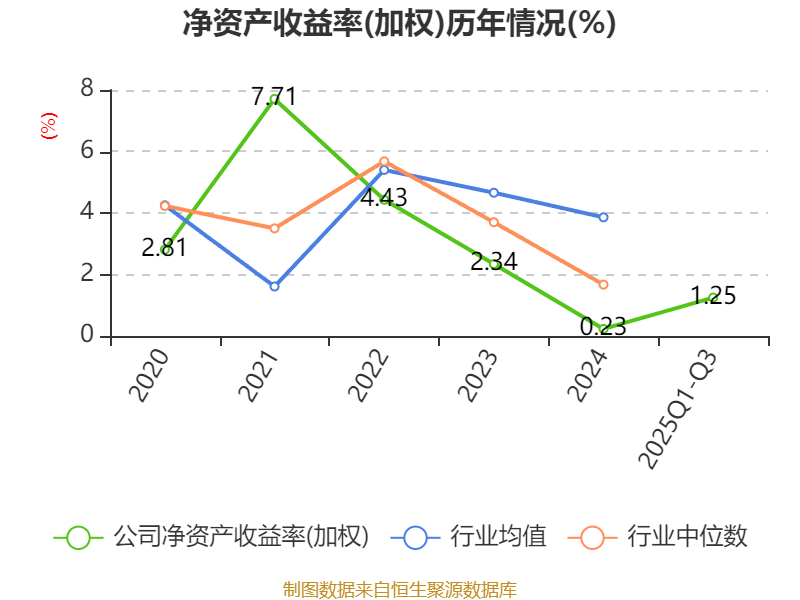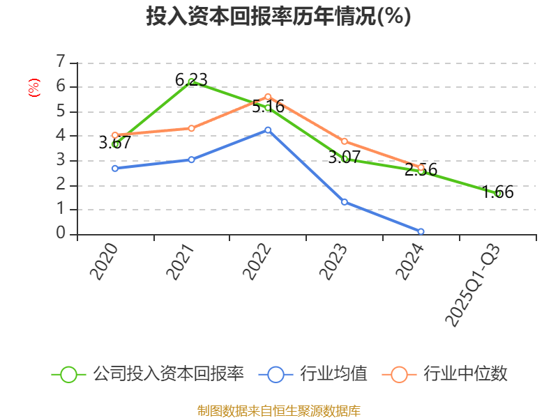 盈利能力方面, 2025年前三季度公司加权平均净资产收益率为1.25%,同比上升0.22个百分点。公司2025年前三季度投入资本回报率为1.66%,较上年同期下降0.94个百分点。