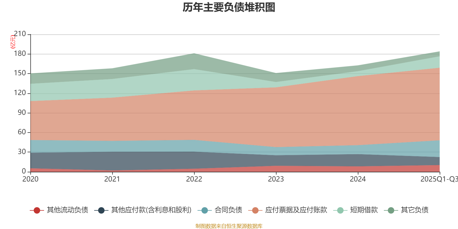 负债重大变化方面,截至2025年三季度末,公司合同负债较上年末增加86.24%,占公司总资产比重上升4.08个百分点;短期借款较上年末增加130.69%,占公司总资产比重上升3.55个百分点;其他应付款(含利息和股利)较上年末减少34.51%,占公司总资产比重下降3.11个百分点;应付票据及应付账款较上年末增加5.13%,占公司总资产比重下降1.54个百分点。