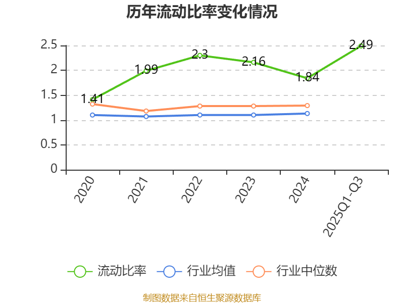 2025年前三季度,公司流动比率为2.49,速动比率为2.27。