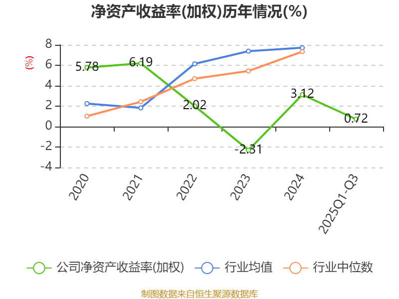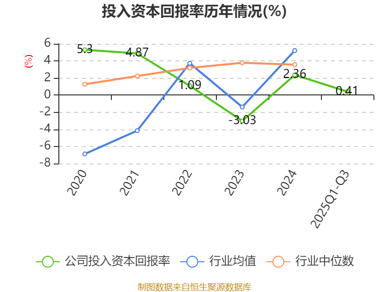盈利能力方面, 2025年前三季度公司加权平均净资产收益率为0.72%,同比下降2.21个百分点。公司2025年前三季度投入资本回报率为0.41%,较上年同期下降1.84个百分点。