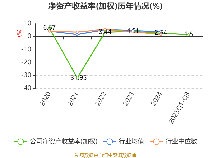 盈利能力方面, 2025年前三季度公司加权平均净资产收益率为1.5%,同比下降1.42个百分点。公司2025年前三季度投入资本回报率为2.66%,较上年同期下降1.14个百分点。