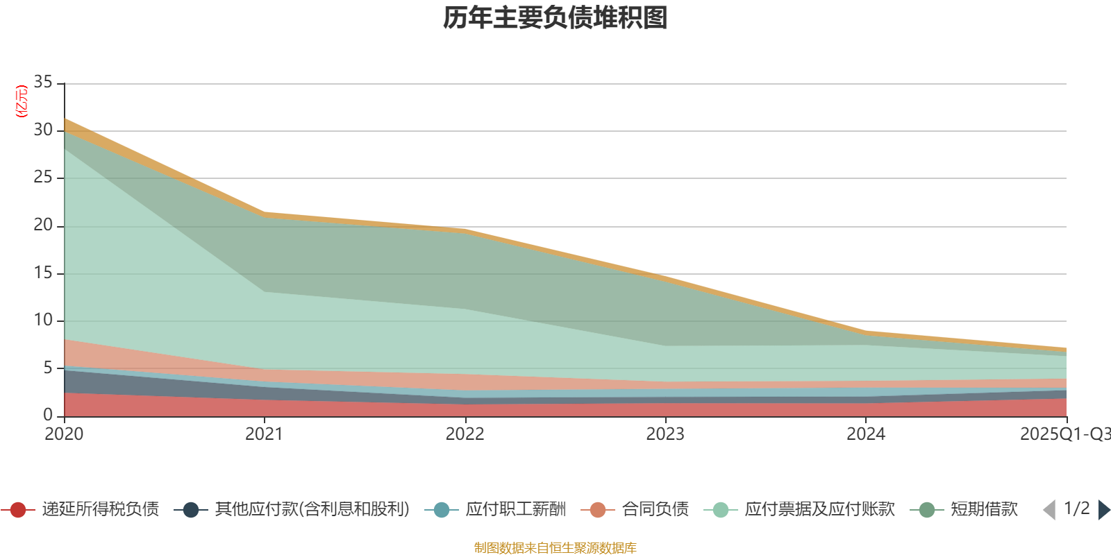 负债重大变化方面,截至2025年三季度末,公司应付票据及应付账款较上年末减少36.94%,占公司总资产比重下降4.44个百分点;应付职工薪酬较上年末减少72.78%,占公司总资产比重下降2.18个百分点;短期借款较上年末减少57.84%,占公司总资产比重下降1.91个百分点;递延所得税负债较上年末增加37.62%,占公司总资产比重上升1.56个百分点。
