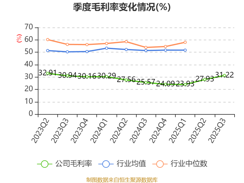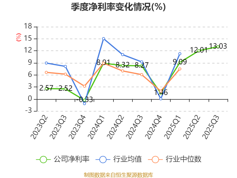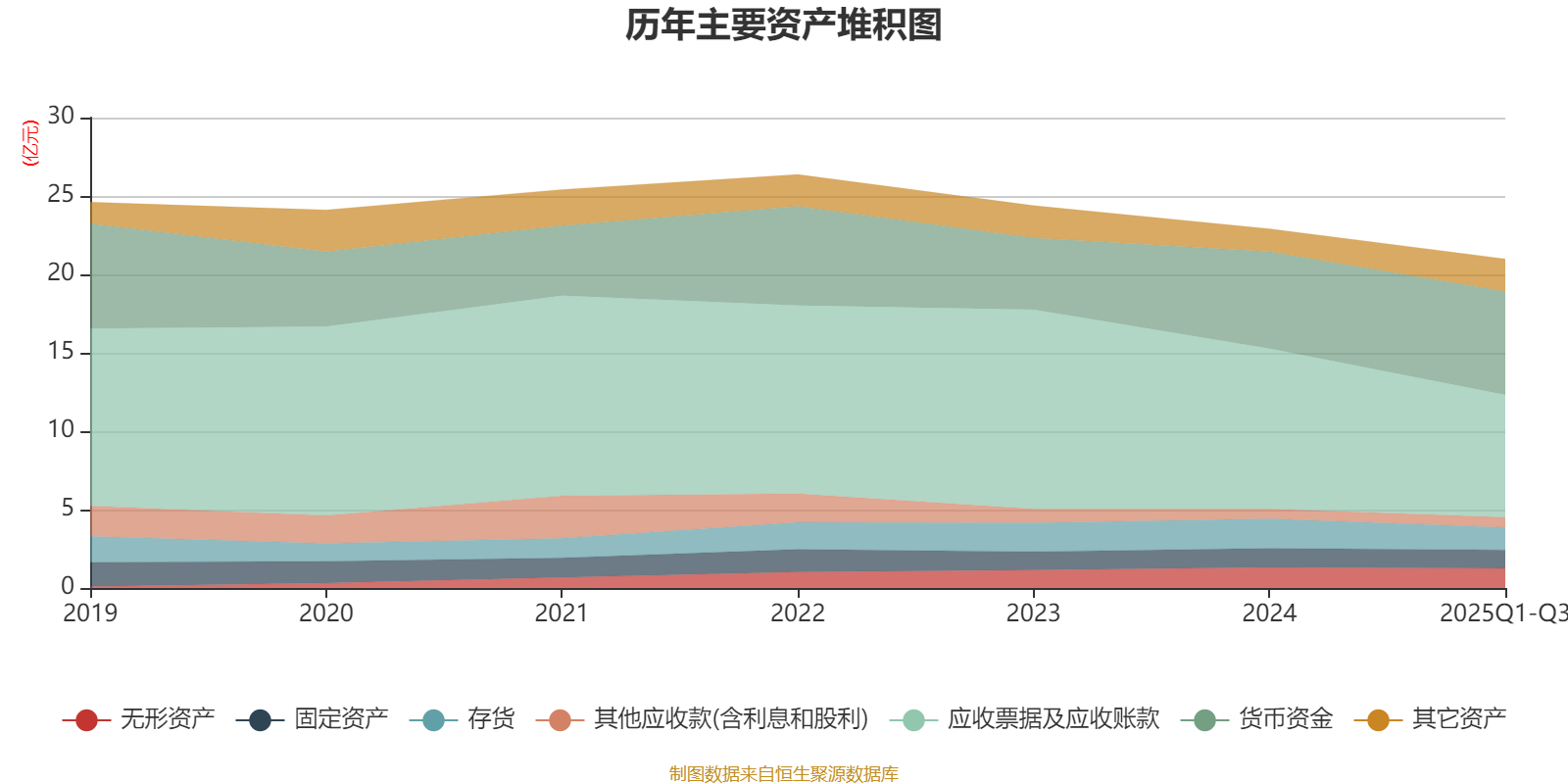资产重大变化方面,截至2025年三季度末,公司应收票据及应收账款较上年末减少23.74%,占公司总资产比重下降7.49个百分点;货币资金较上年末增加6.89%,占公司总资产比重上升4.49个百分点;交易性金融资产合计占公司总资产的1.39%,上年末为0;存货较上年末减少23.74%,占公司总资产比重下降1.38个百分点。