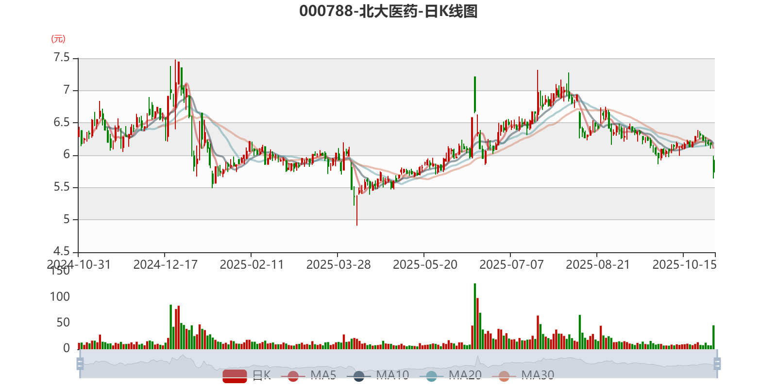中证智能财讯北大医药(000788)10月31日披露2025年第三季度报告。前三季度公司实现营业总收入12.31亿元,同比下降19.76%;归母净利润1.36亿元,同比增长4.31%;扣非净利润1.26亿元,同比下降2.66%;经营活动产生的现金流量净额为1.32亿元,同比增长106.32%;报告期内,北大医药基本每股收益为0.2282元,加权平均净资产收益率为8.63%。