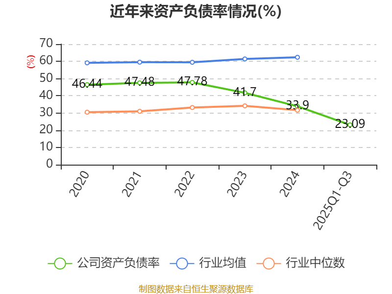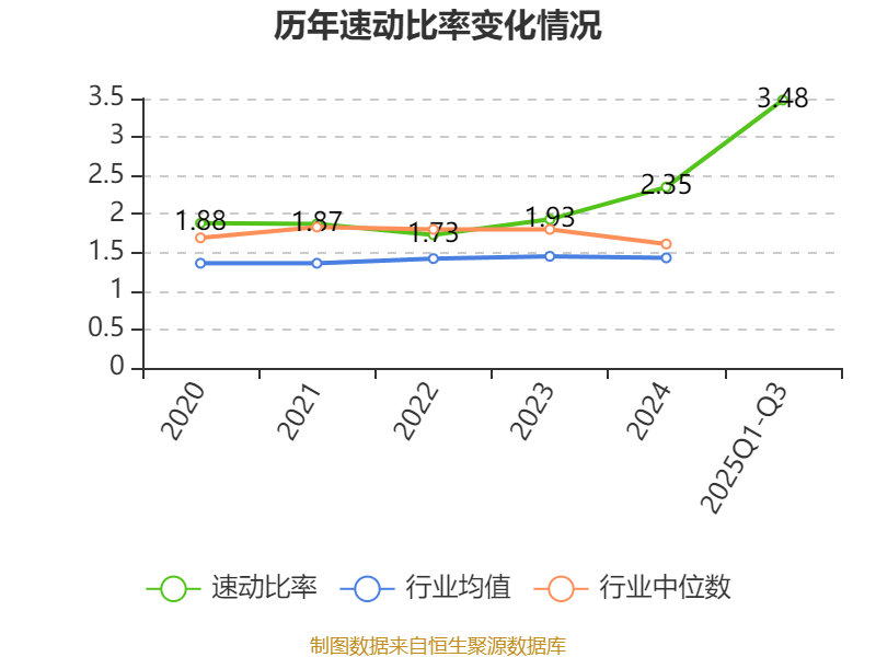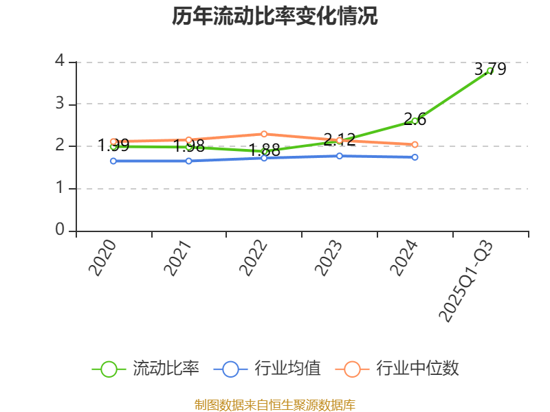 2025年前三季度,公司流动比率为3.79,速动比率为3.48。