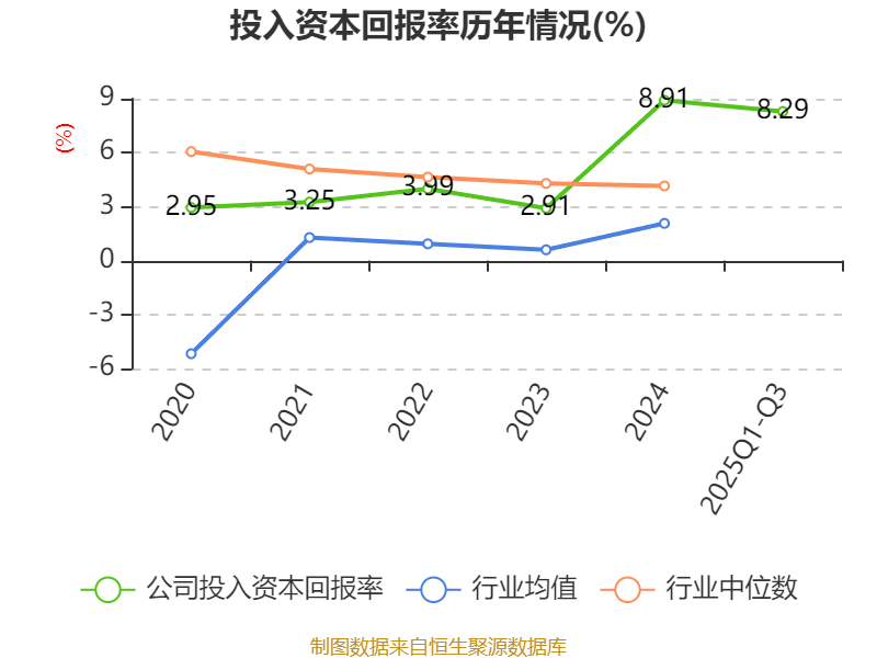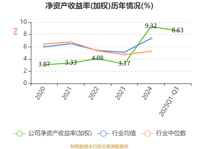 盈利能力方面, 2025年前三季度公司加权平均净资产收益率为8.63%,同比下降0.17个百分点。公司2025年前三季度投入资本回报率为8.29%,较上年同期下降0.18个百分点。