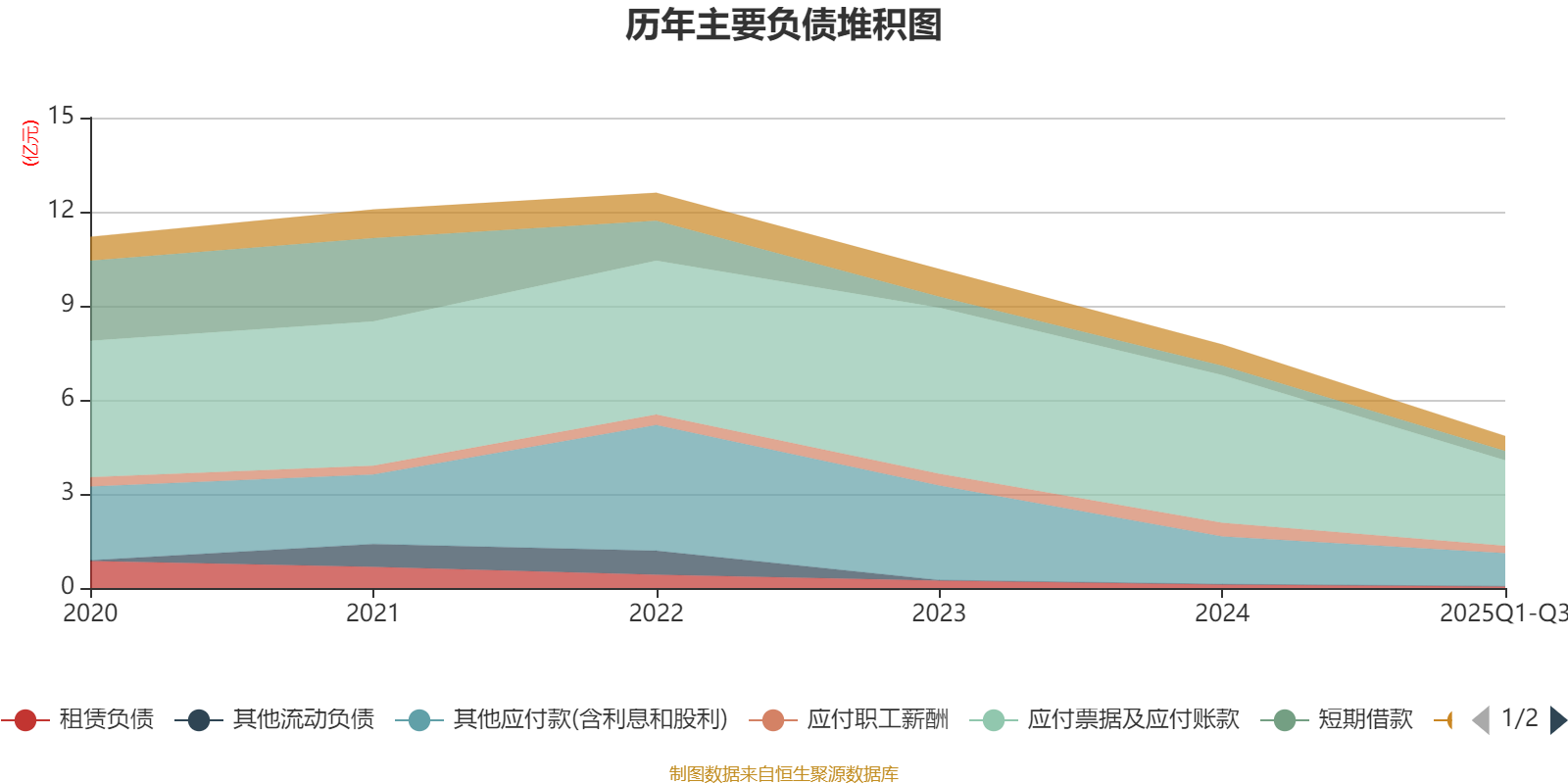 负债重大变化方面,截至2025年三季度末,公司应付票据及应付账款较上年末减少42.18%,占公司总资产比重下降7.59个百分点;其他应付款(含利息和股利)较上年末减少30.55%,占公司总资产比重下降1.61个百分点;应付职工薪酬较上年末减少46.19%,占公司总资产比重下降0.78个百分点;合同负债较上年末减少64.59%,占公司总资产比重下降0.37个百分点。