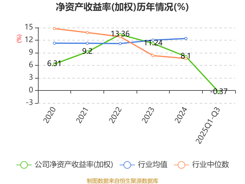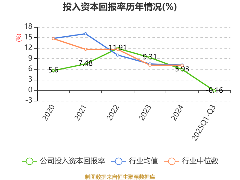 盈利能力方面, 2025年前三季度公司加权平均净资产收益率为-0.37%,同比下降4.74个百分点。公司2025年前三季度投入资本回报率为-0.16%,较上年同期下降3.53个百分点。