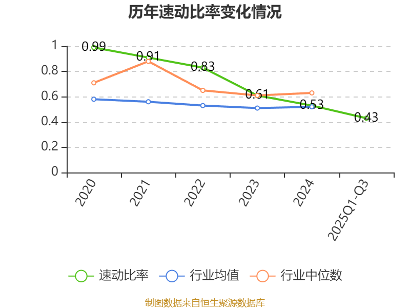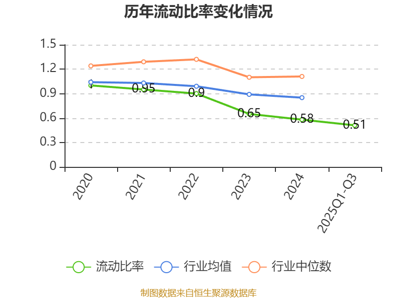 2025年前三季度,公司流动比率为0.51,速动比率为0.43。