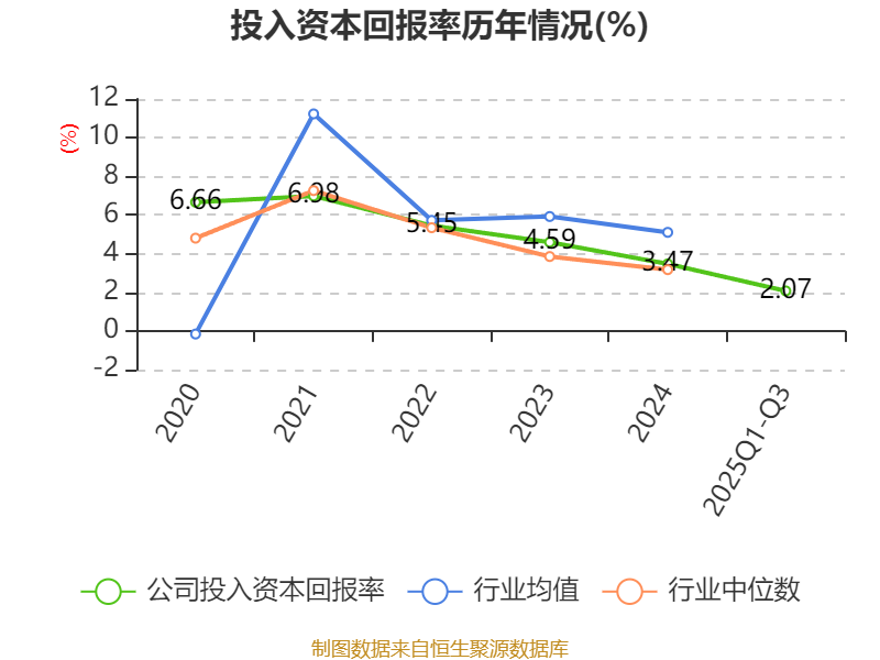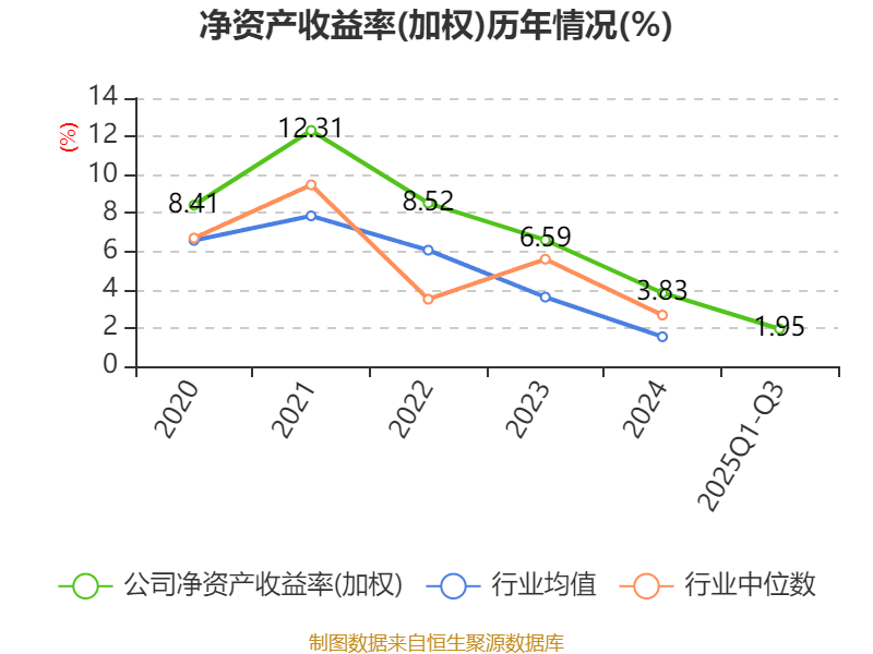 盈利能力方面, 2025年前三季度公司加权平均净资产收益率为1.95%,同比下降1.69个百分点。公司2025年前三季度投入资本回报率为2.07%,较上年同期下降0.87个百分点。