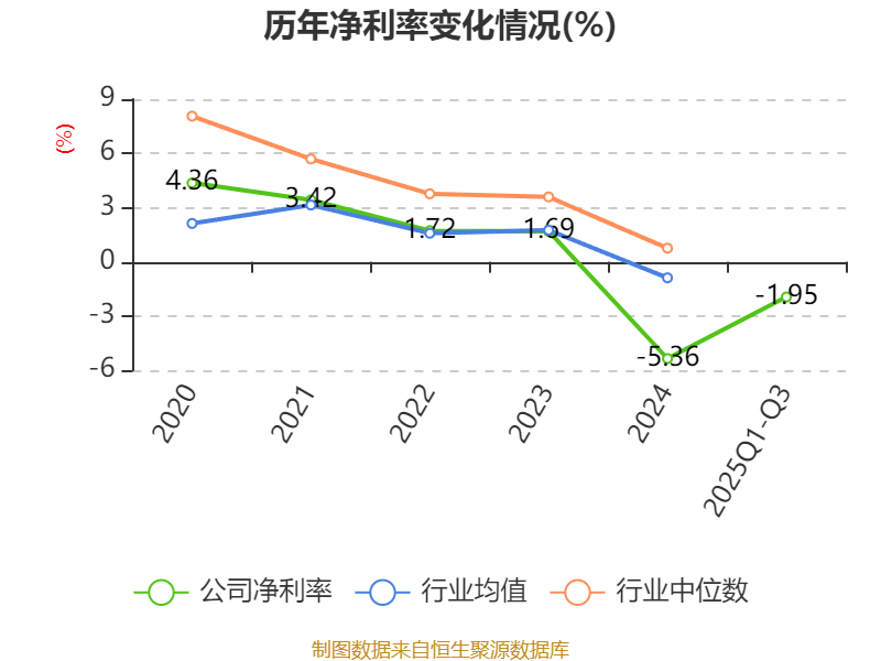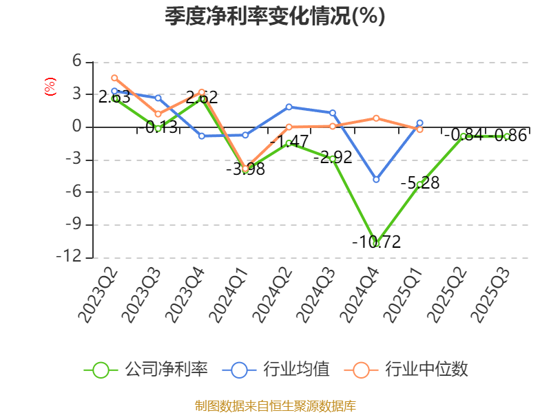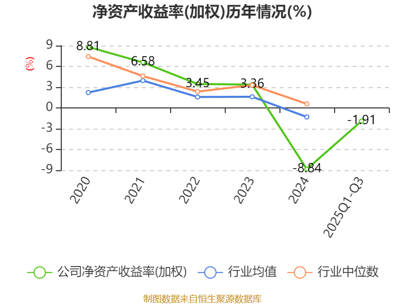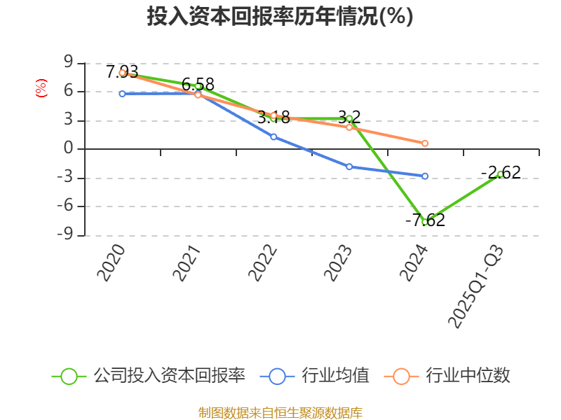 盈利能力方面, 2025年前三季度公司加权平均净资产收益率为-1.91%,同比上升0.01个百分点。公司2025年前三季度投入资本回报率为-2.62%,较上年同期上升0.18个百分点。