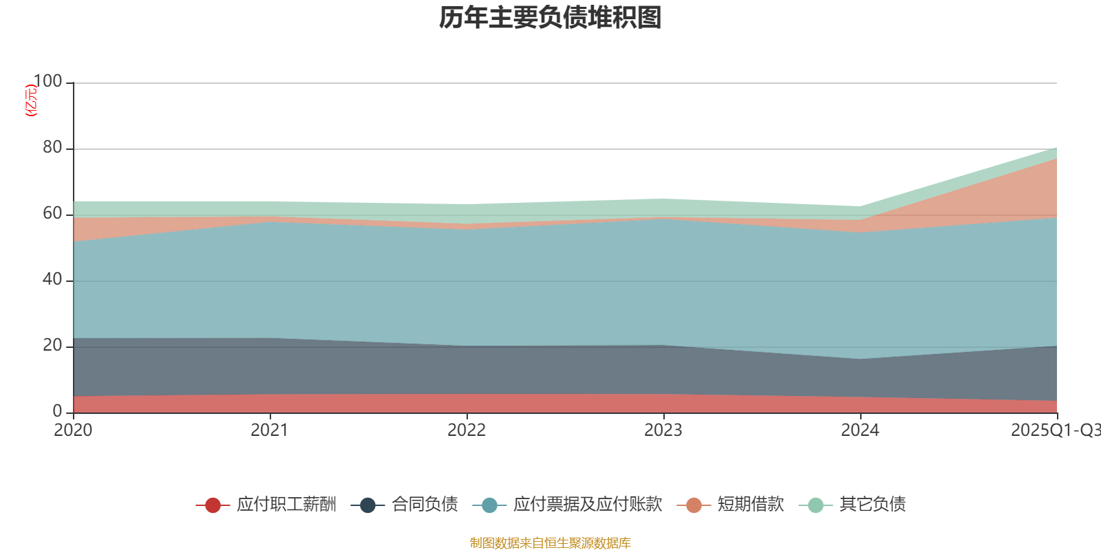 负债重大变化方面,截至2025年三季度末,公司短期借款较上年末增加371.47%,占公司总资产比重上升10个百分点;应付票据及应付账款较上年末增加1.33%,占公司总资产比重下降3.45个百分点;合同负债较上年末增加44.38%,占公司总资产比重上升2.61个百分点;应付职工薪酬较上年末减少24.18%,占公司总资产比重下降1.3个百分点。