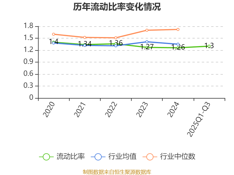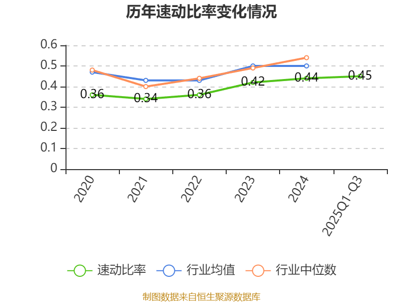 2025年前三季度,公司流动比率为1.3,速动比率为0.45。