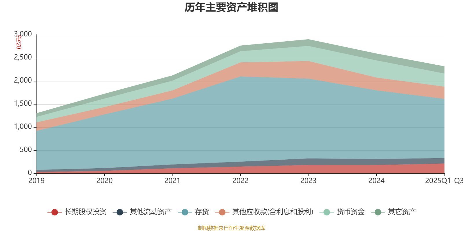资产重大变化方面,截至2025年三季度末,公司长期股权投资较上年末增加17.13%,占公司总资产比重上升2.15个百分点;货币资金较上年末减少23.17%,占公司总资产比重下降2个百分点;存货较上年末减少13.63%,占公司总资产比重下降1.88个百分点;投资性房地产较上年末增加5.91%,占公司总资产比重上升0.7个百分点。