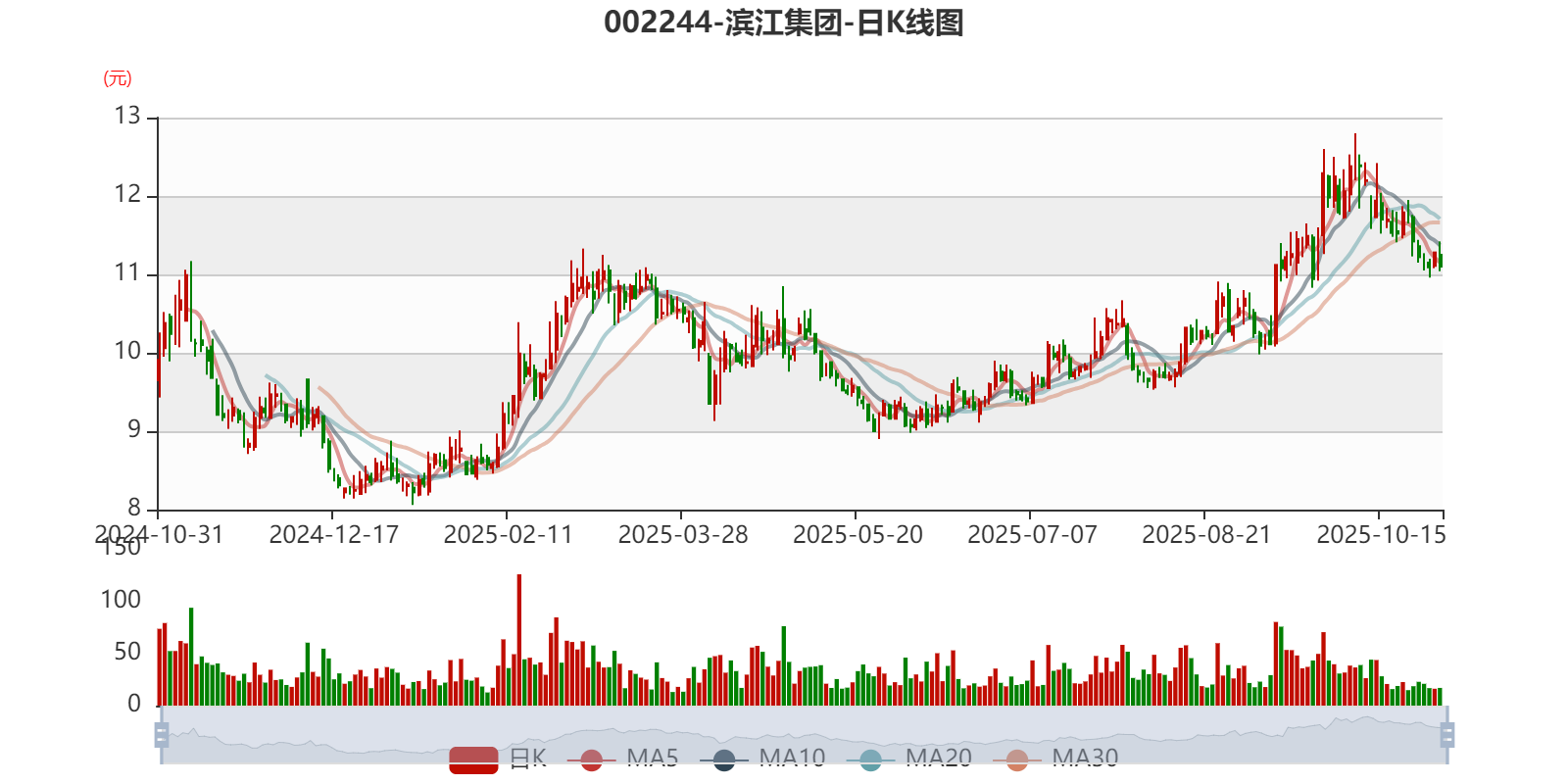 以10月30日收盘价计算,滨江集团目前市盈率(TTM)约为10.44倍,市净率(LF)约1.16倍,市销率(TTM)约0.37倍。
