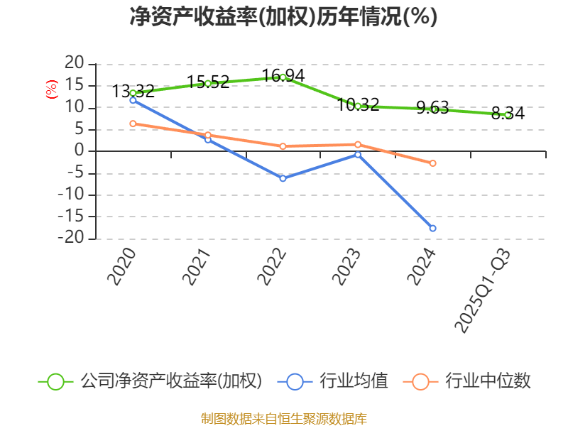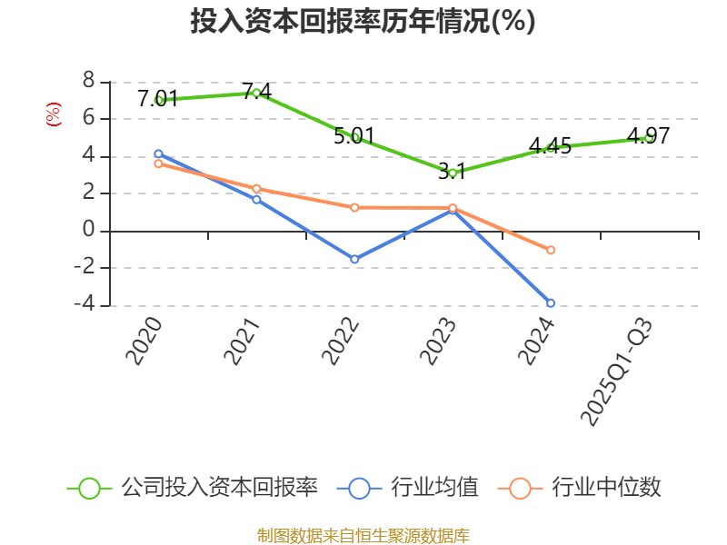 盈利能力方面, 2025年前三季度公司加权平均净资产收益率为8.34%,同比上升2.08个百分点。公司2025年前三季度投入资本回报率为4.97%,较上年同期上升2.91个百分点。