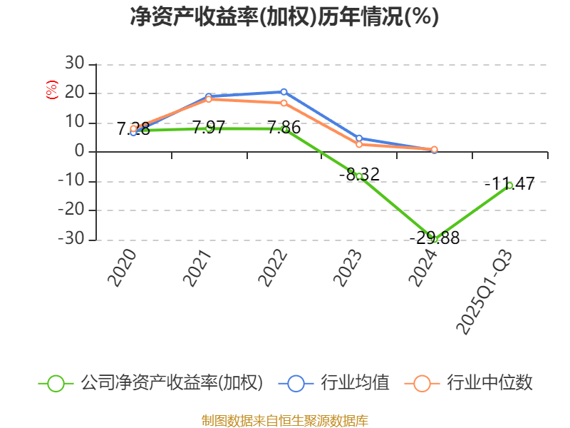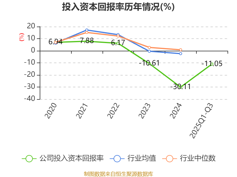 盈利能力方面, 2025年前三季度公司加权平均净资产收益率为-11.47%,同比上升3.99个百分点。公司2025年前三季度投入资本回报率为-11.05%,较上年同期上升6.71个百分点。