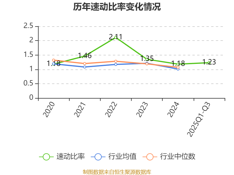 2025年前三季度,公司流动比率为1.98,速动比率为1.23。