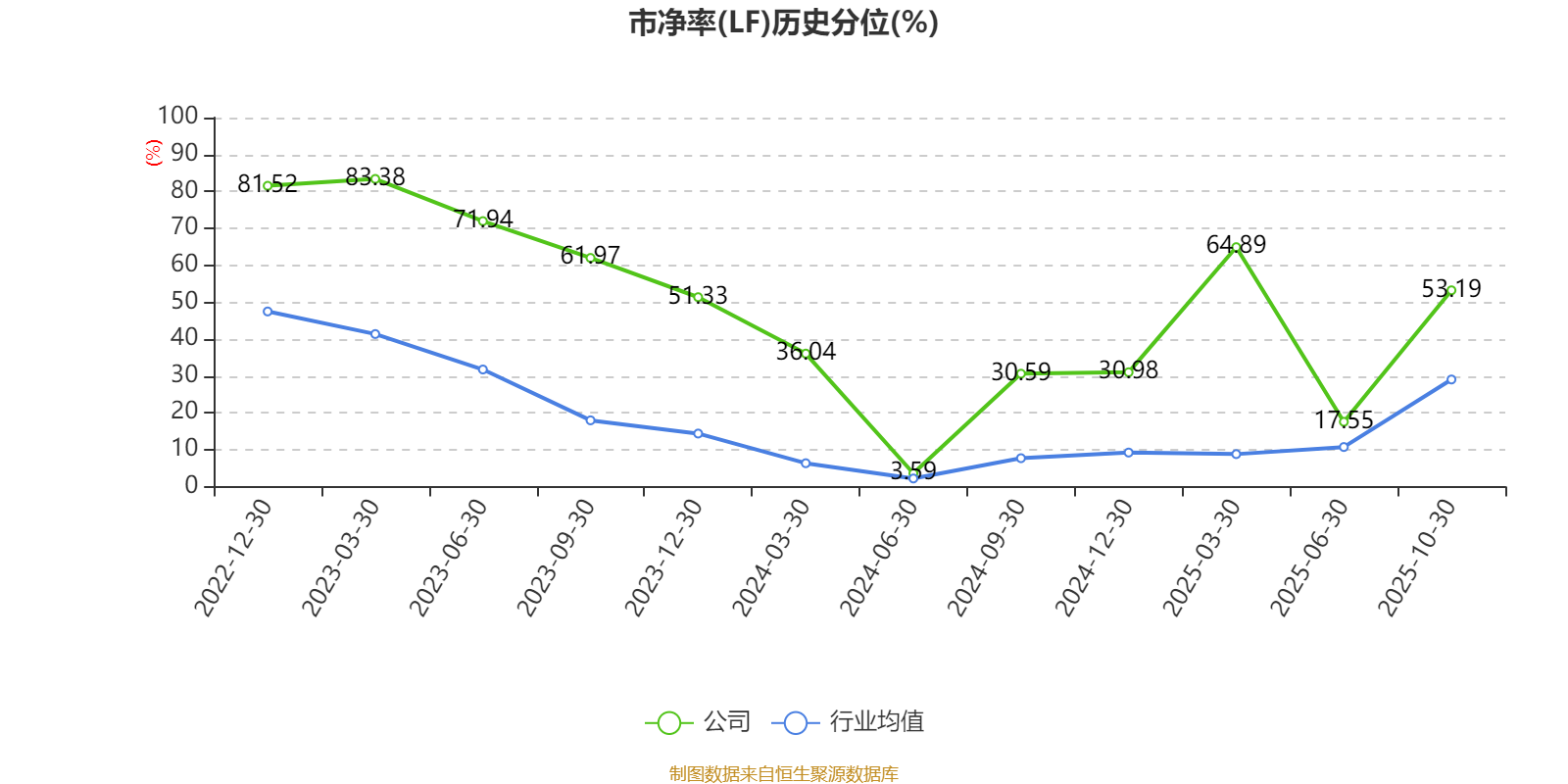 市盈率、市净率为负时,不显示当期分位数,会导致折线图中断。