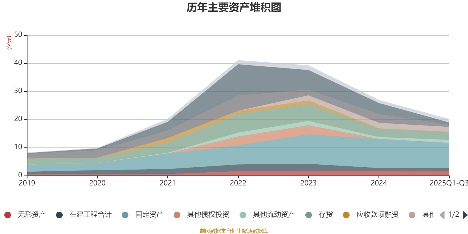 资产重大变化方面,截至2025年三季度末,公司货币资金较上年末减少78.68%,占公司总资产比重下降10.6个百分点;应收票据及应收账款较上年末减少76.06%,占公司总资产比重下降7.75个百分点;固定资产较上年末减少14.15%,占公司总资产比重上升5.74个百分点;其他流动资产较上年末增加75.08%,占公司总资产比重上升3.15个百分点。