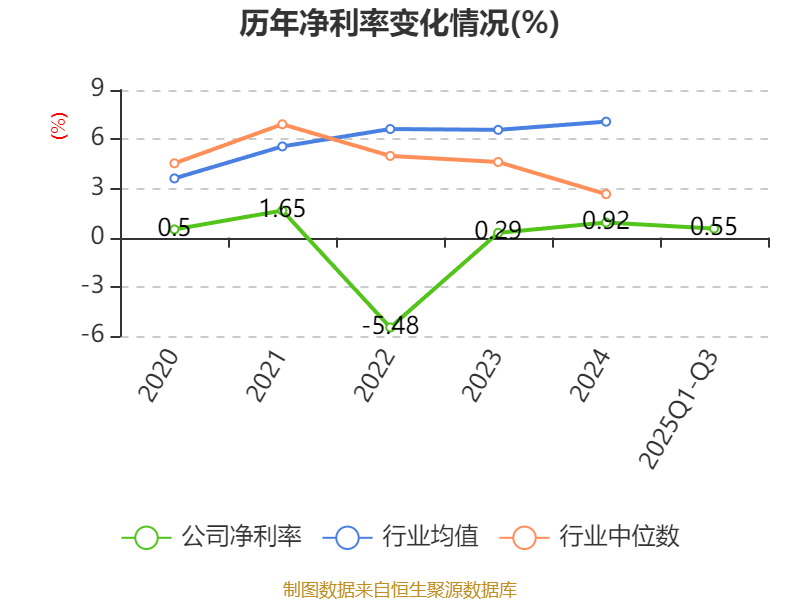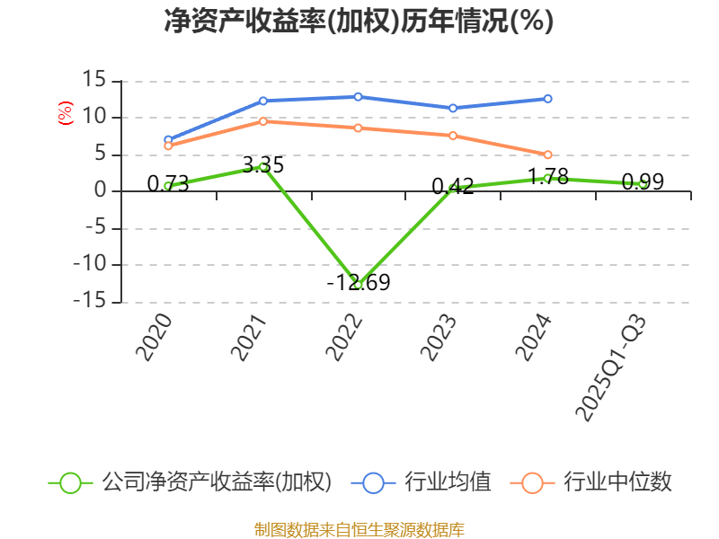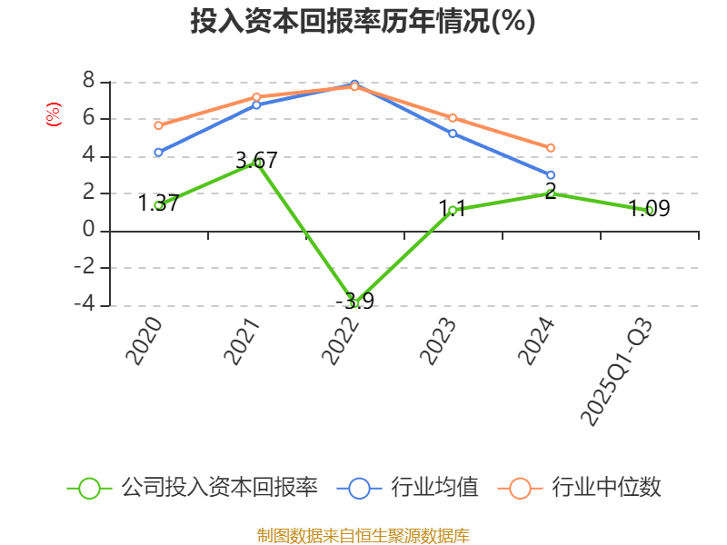 盈利能力方面, 2025年前三季度公司加权平均净资产收益率为0.99%,同比下降0.42个百分点。公司2025年前三季度投入资本回报率为1.09%,较上年同期下降0.42个百分点。