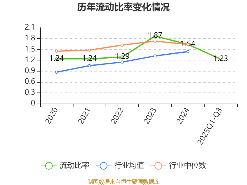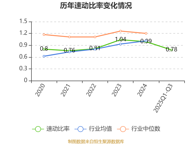 2025年前三季度,公司流动比率为1.23,速动比率为0.78。