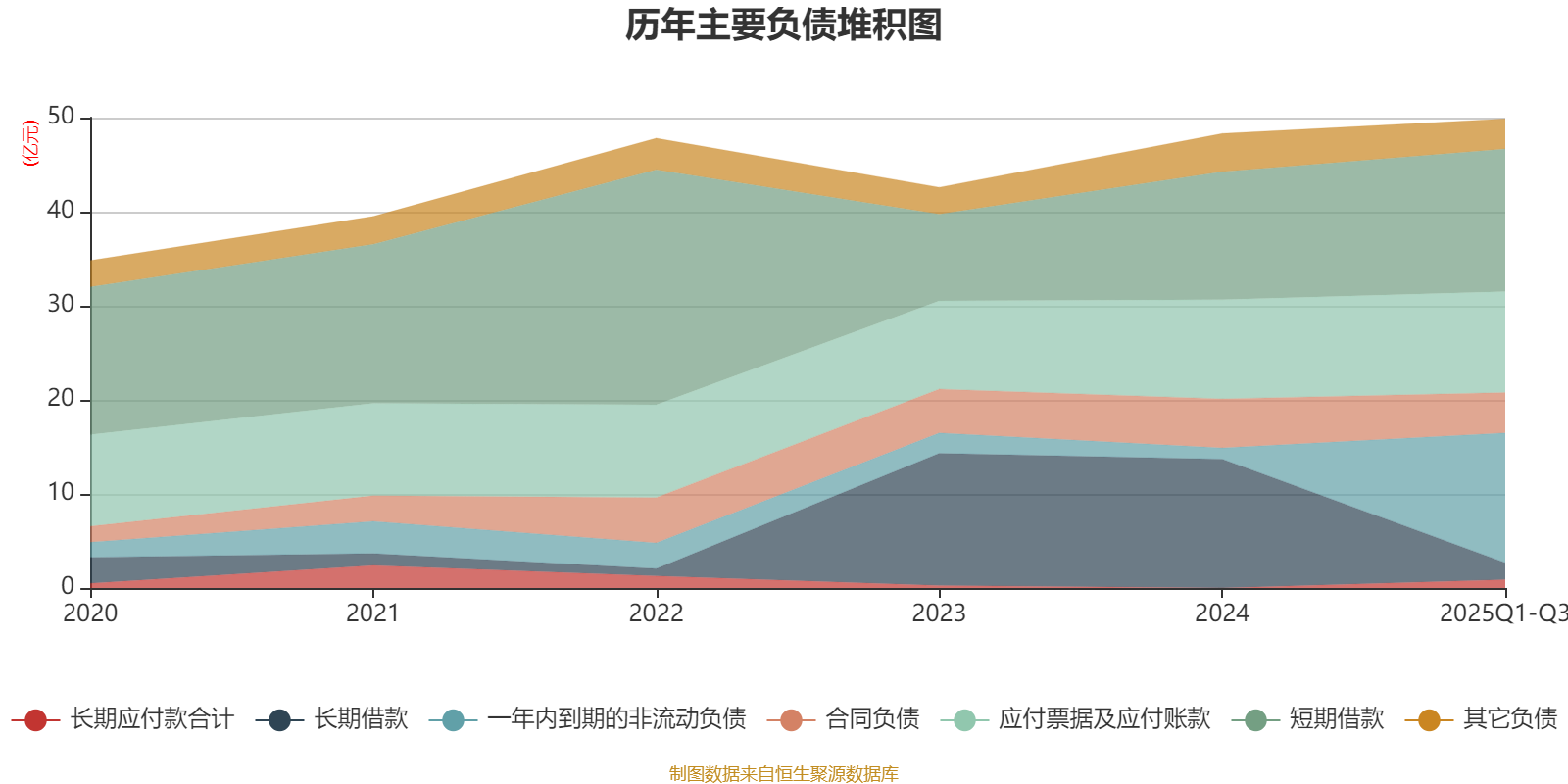 负债重大变化方面,截至2025年三季度末,公司一年内到期的非流动负债较上年末增加1060.38%,占公司总资产比重上升14.4个百分点;长期借款较上年末减少86.94%,占公司总资产比重下降14个百分点;短期借款较上年末增加11.45%,占公司总资产比重上升1.41个百分点;合同负债较上年末减少17.74%,占公司总资产比重下降1.2个百分点。