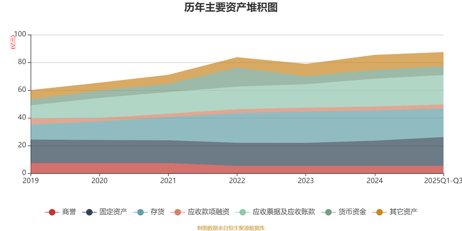 资产重大变化方面,截至2025年三季度末,公司在建工程合计较上年末减少53.99%,占公司总资产比重下降2.52个百分点;固定资产较上年末增加14.4%,占公司总资产比重上升2.5个百分点;存货较上年末减少5.2%,占公司总资产比重下降1.88个百分点;预付款项较上年末增加203.97%,占公司总资产比重上升1.74个百分点。