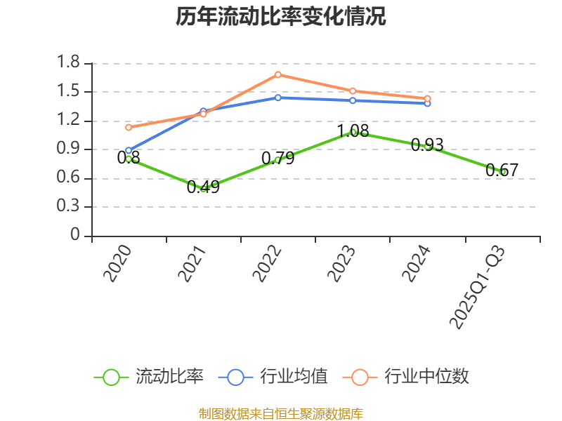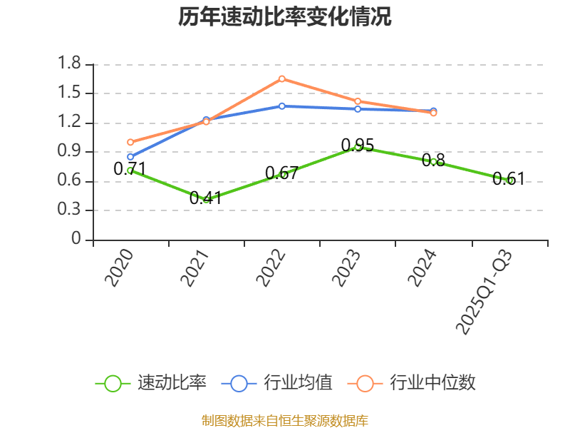 2025年前三季度,公司流动比率为0.67,速动比率为0.61。
