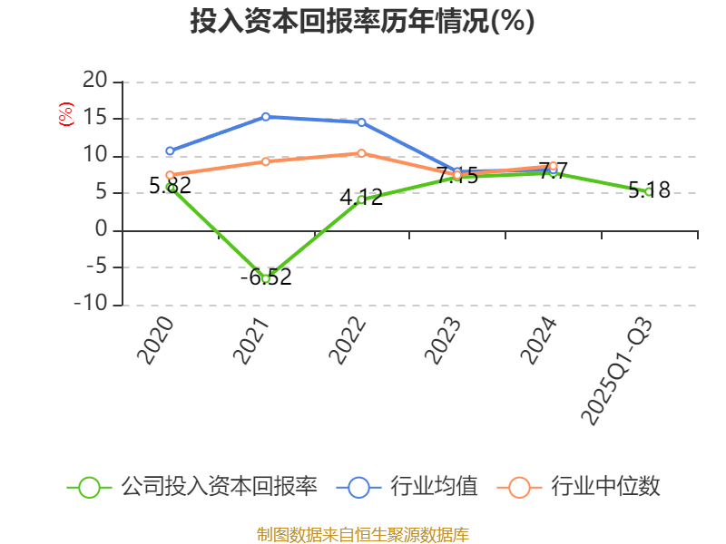 盈利能力方面, 2025年前三季度公司加权平均净资产收益率为7.33%,同比下降2.05个百分点。公司2025年前三季度投入资本回报率为5.18%,较上年同期下降1.29个百分点。