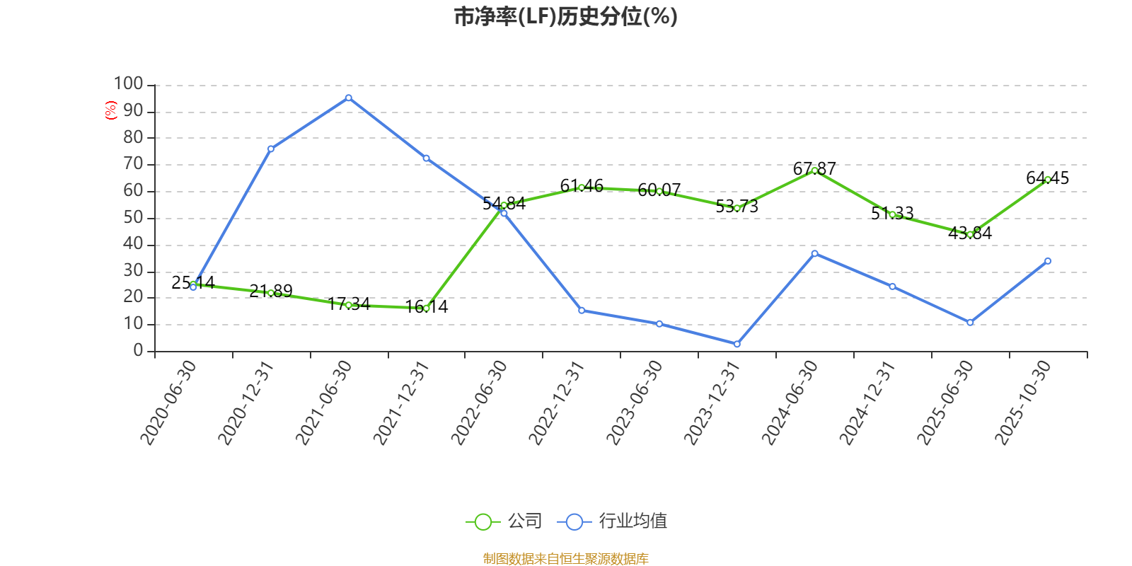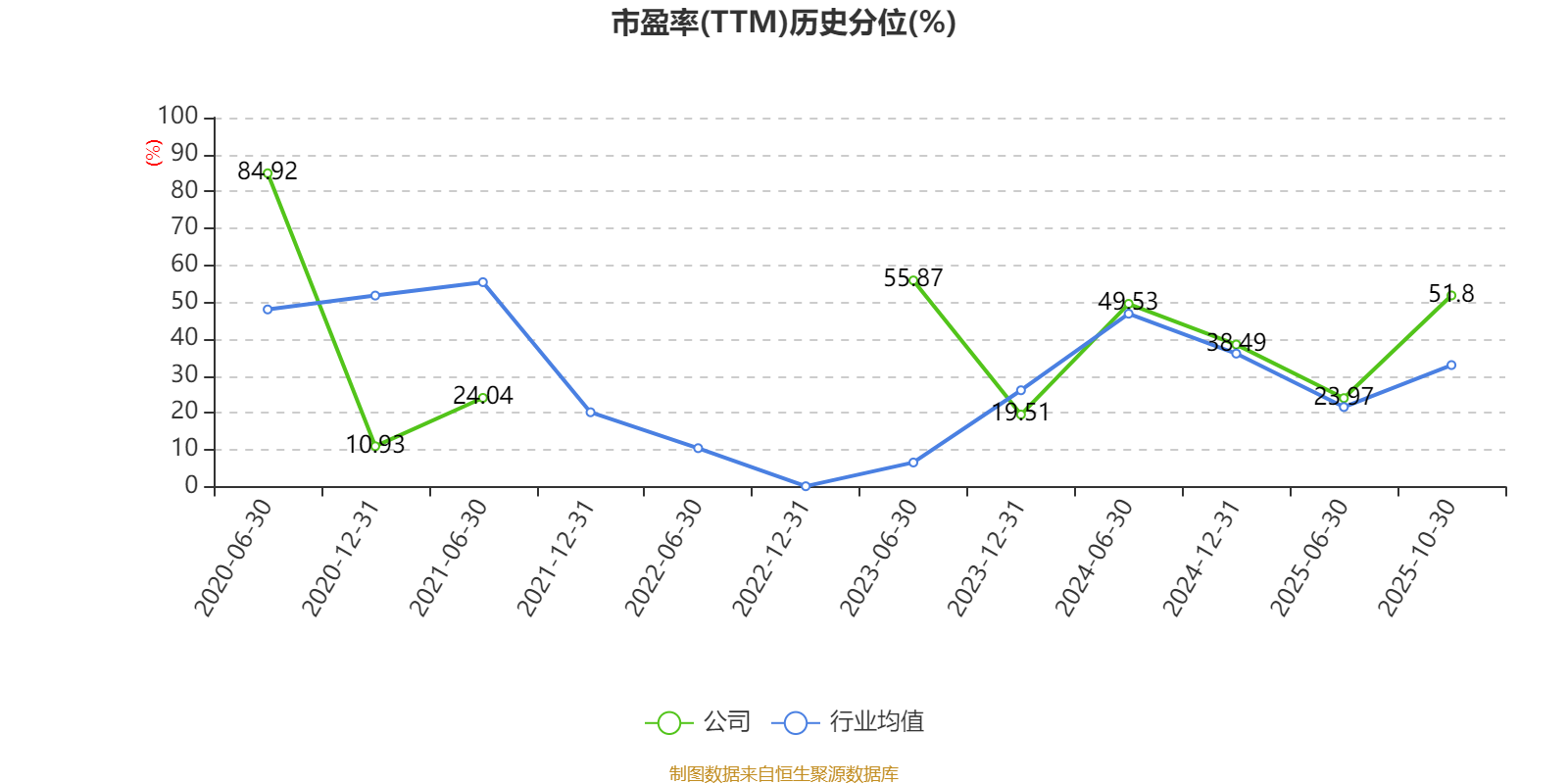 市盈率、市净率为负时,不显示当期分位数,会导致折线图中断。