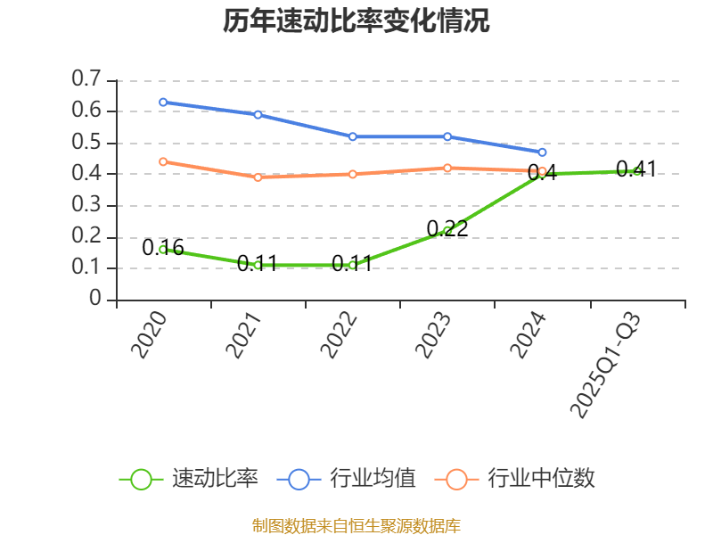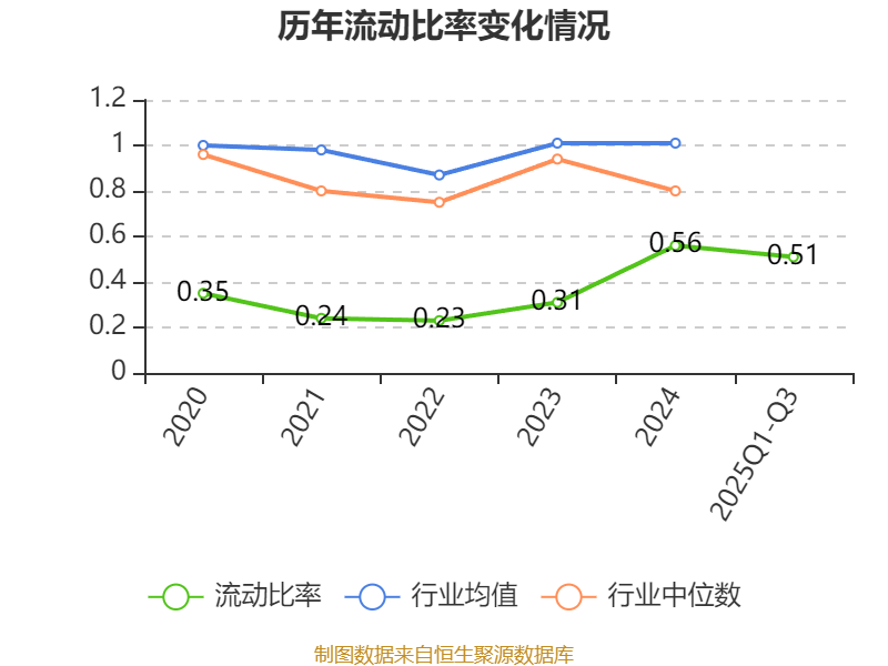 2025年前三季度,公司流动比率为0.51,速动比率为0.41。