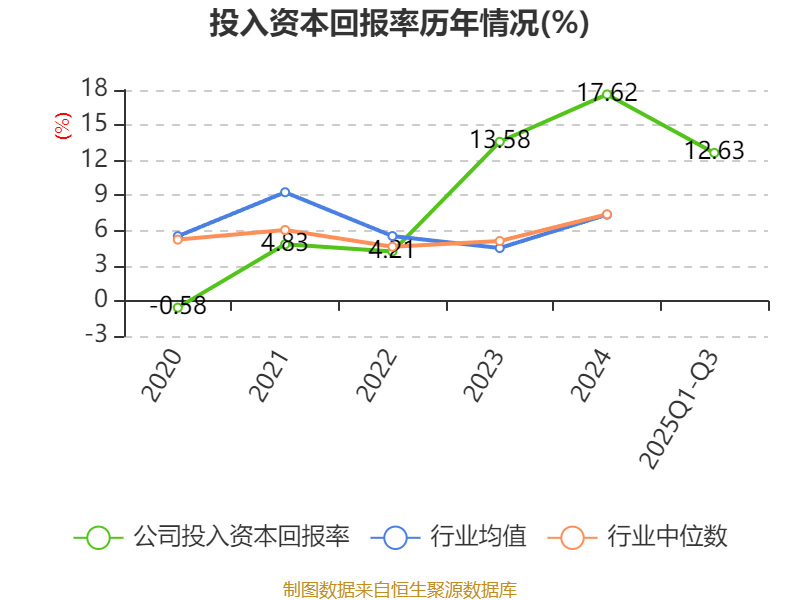 盈利能力方面, 2025年前三季度公司加权平均净资产收益率为15.88%,同比下降2.47个百分点。公司2025年前三季度投入资本回报率为12.63%,较上年同期下降2.69个百分点。