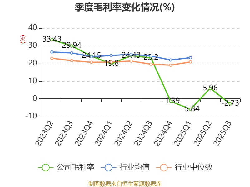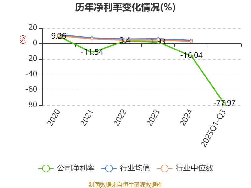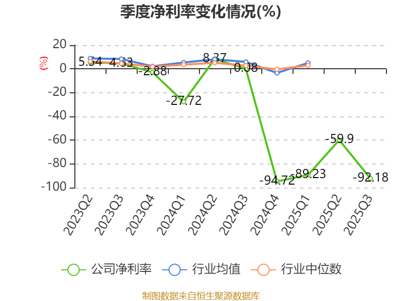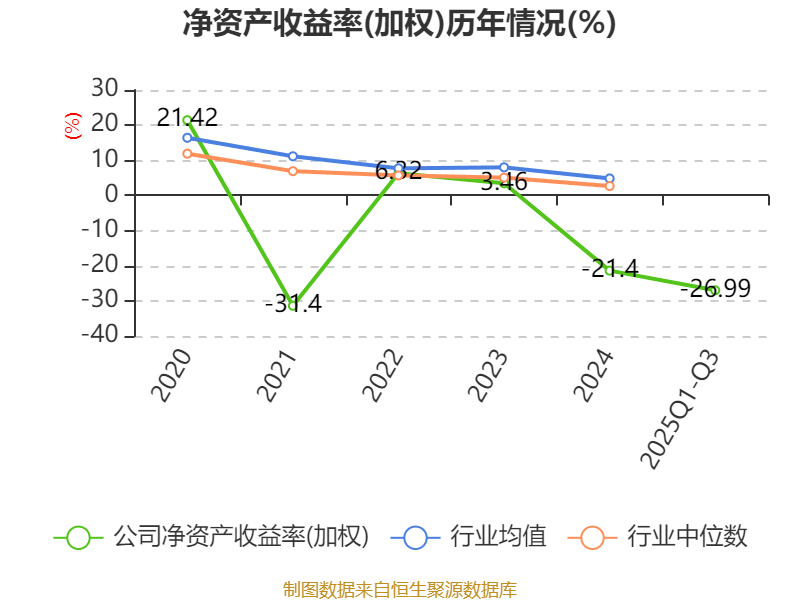 盈利能力方面, 2025年前三季度公司加权平均净资产收益率为-26.99%,同比下降25.91个百分点。公司2025年前三季度投入资本回报率为-8.73%,较上年同期下降9.6个百分点。