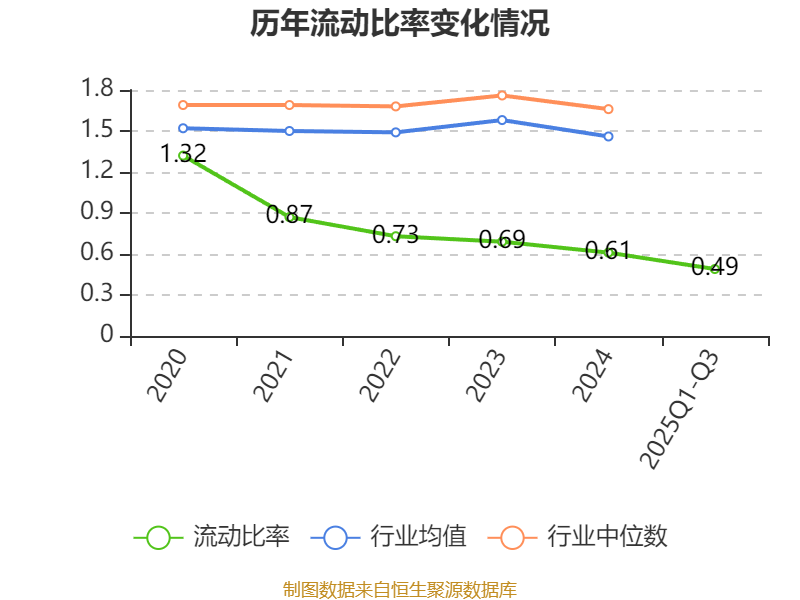 2025年前三季度,公司流动比率为0.49,速动比率为0.47。