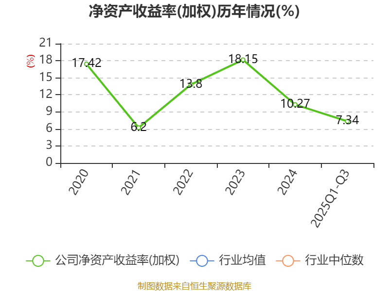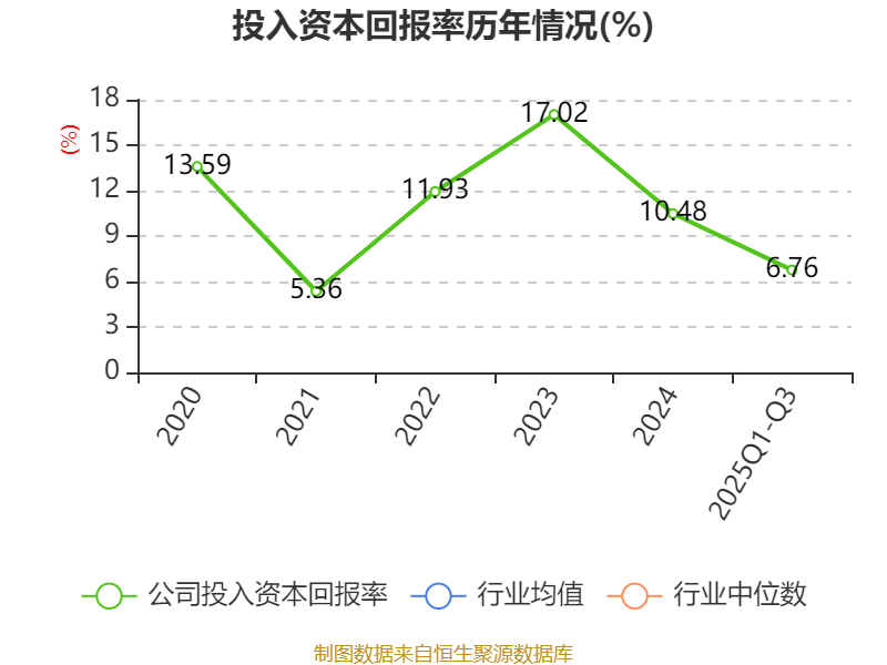 盈利能力方面, 2025年前三季度公司加权平均净资产收益率为7.34%,同比下降1.88个百分点。公司2025年前三季度投入资本回报率为6.76%,较上年同期下降2.56个百分点。