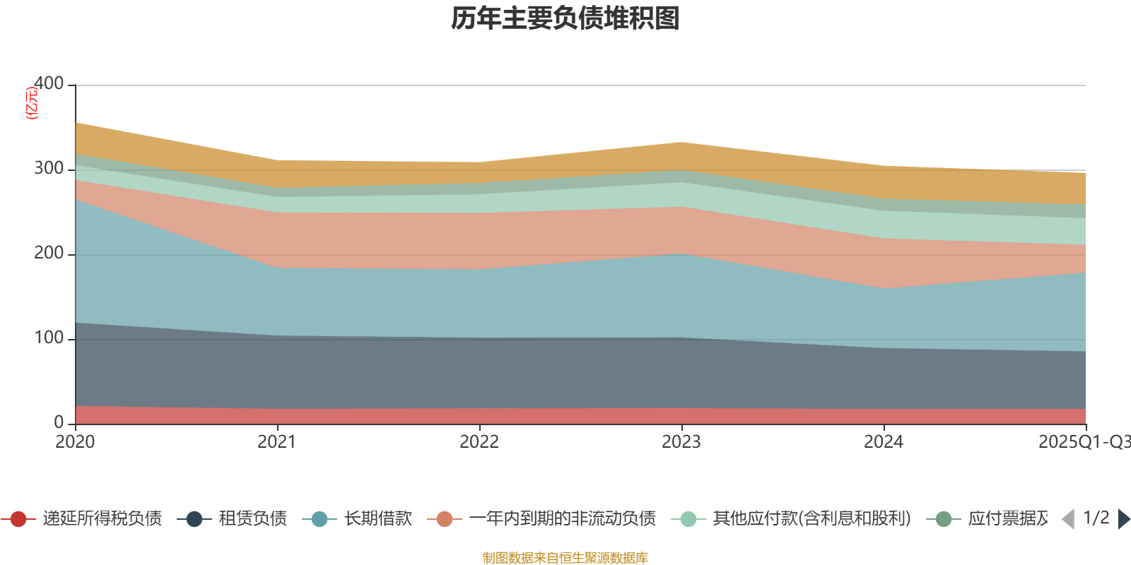 负债重大变化方面,截至2025年三季度末,公司一年内到期的非流动负债较上年末减少44.38%,占公司总资产比重下降5.61个百分点;长期借款较上年末增加31.84%,占公司总资产比重上升5.05个百分点;租赁负债较上年末减少5.49%,占公司总资产比重下降0.72个百分点;其他非流动负债较上年末减少82.79%,占公司总资产比重下降0.62个百分点。