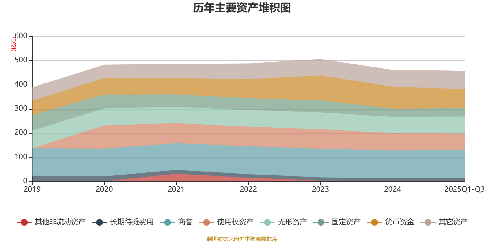 资产重大变化方面,截至2025年三季度末,公司货币资金较上年末减少14.3%,占公司总资产比重下降2.66个百分点;使用权资产较上年末减少6.32%,占公司总资产比重下降0.84个百分点;商誉较上年末增加2.34%,占公司总资产比重上升0.82个百分点;无形资产较上年末增加3.24%,占公司总资产比重上升0.62个百分点。