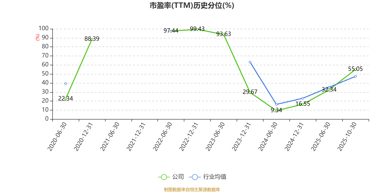 市盈率、市净率为负时,不显示当期分位数,会导致折线图中断。