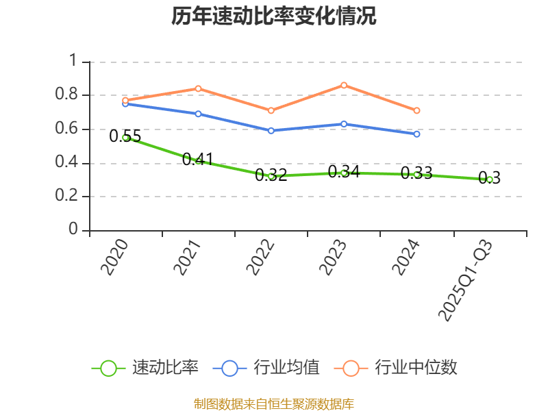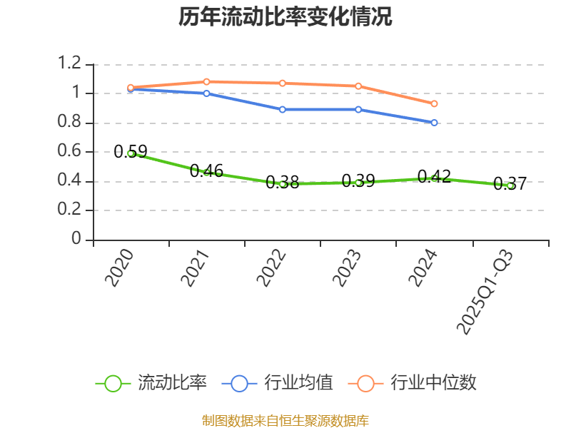 2025年前三季度,公司流动比率为0.37,速动比率为0.3。