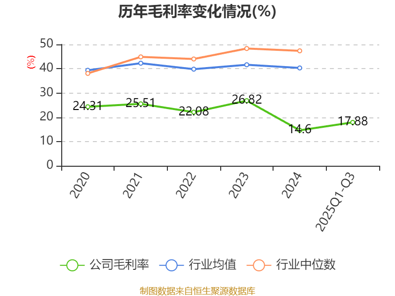 盈利能力方面, 2025年前三季度公司加权平均净资产收益率为-25.27%,同比下降12个百分点。公司2025年前三季度投入资本回报率为-18.23%,较上年同期下降6.99个百分点。