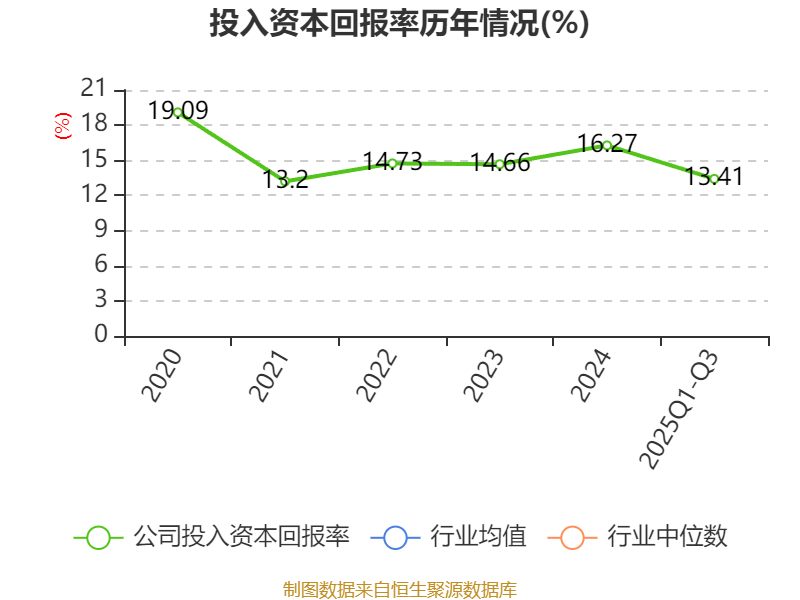 盈利能力方面, 2025年前三季度公司加权平均净资产收益率为13.64%,同比上升2.02个百分点。公司2025年前三季度投入资本回报率为13.41%,较上年同期上升2.49个百分点。