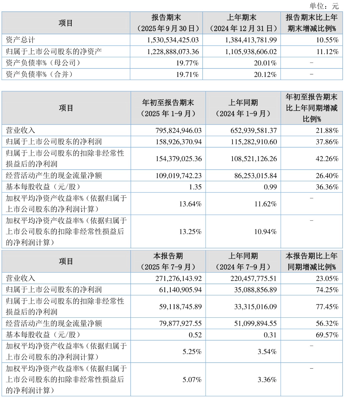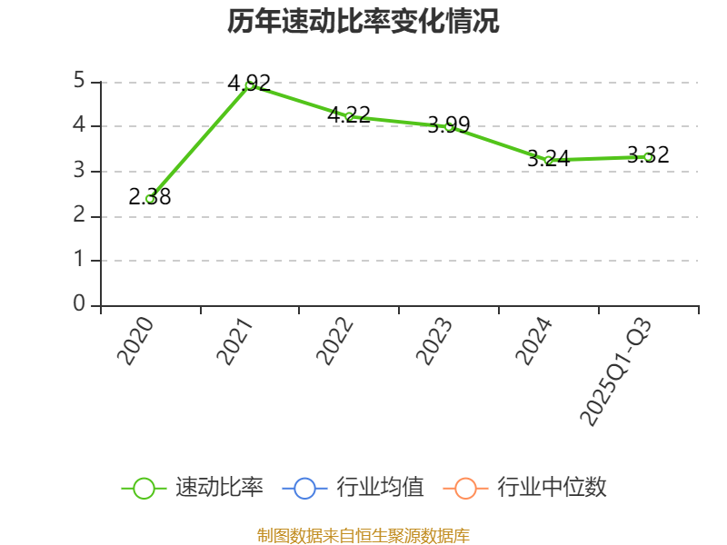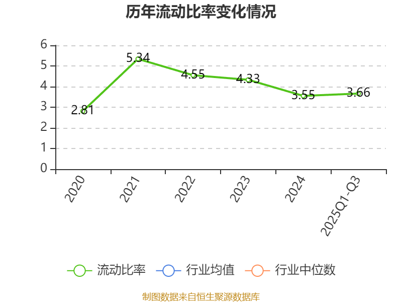 2025年前三季度,公司流动比率为3.66,速动比率为3.32。