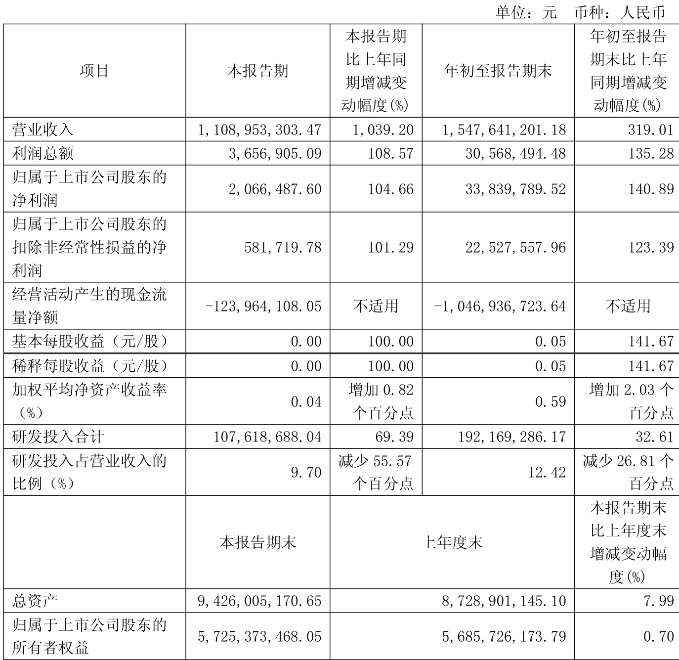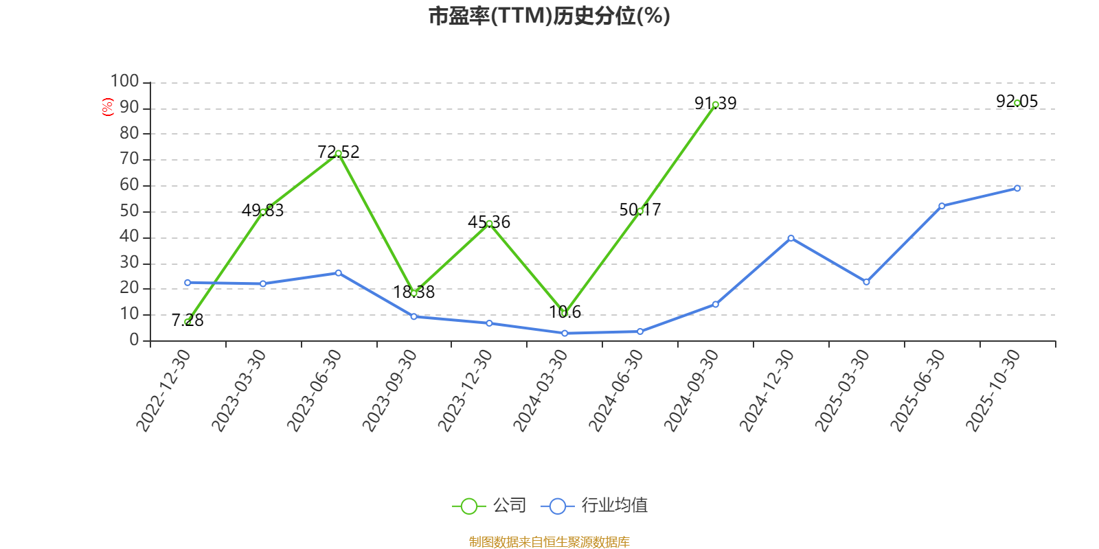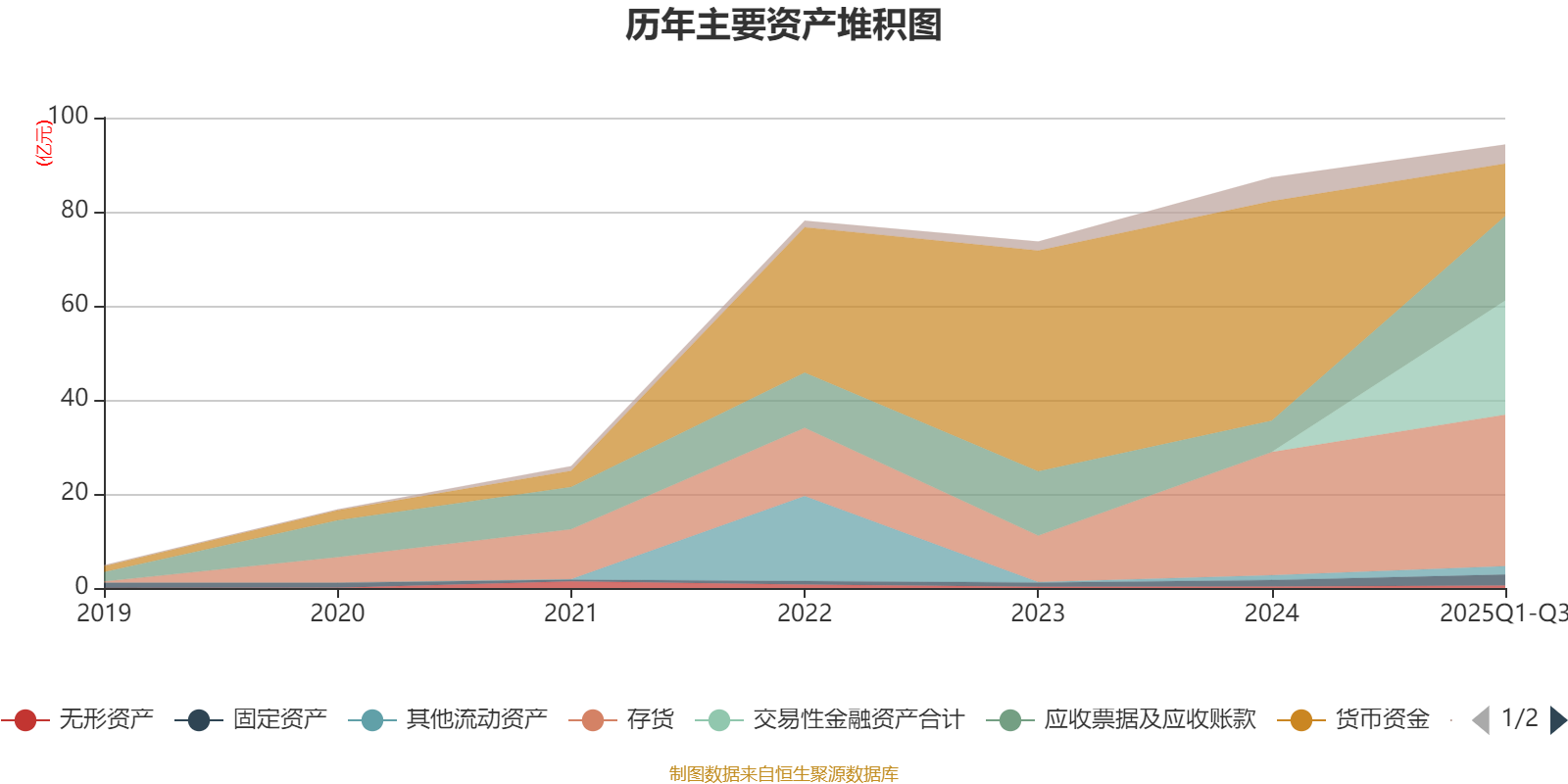 资产重大变化方面,截至2025年三季度末,公司货币资金较上年末减少76.11%,占公司总资产比重下降41.64个百分点;交易性金融资产合计占公司总资产的25.72%,上年末为0;应收票据及应收账款较上年末增加169.75%,占公司总资产比重上升11.43个百分点;存货较上年末增加22.88%,占公司总资产比重上升4.14个百分点。