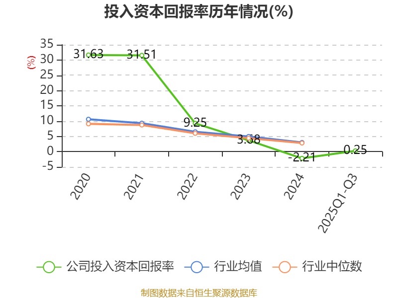 盈利能力方面, 2025年前三季度公司加权平均净资产收益率为0.59%,同比上升2.03个百分点。公司2025年前三季度投入资本回报率为0.25%,较上年同期上升2.55个百分点。